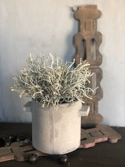 Mooi zilverstruik bush plantje (kunst) staat stoer in mooie SERAX beton pot.